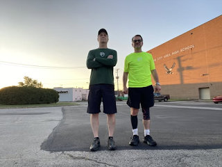 jogged to lightposts with stops for 5 merkins, 10 squats, 15 calf raises